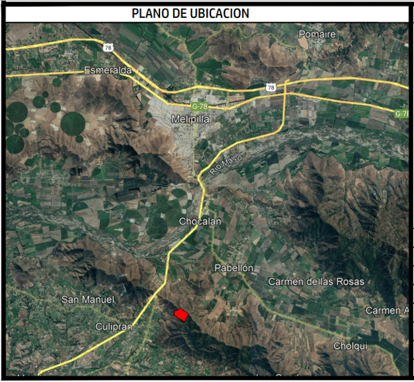 Propiedad con destino agrícola, con una superficie de 50.000 m2. Se ubica en la comuna de Melipilla, sector Cerro Culipran, emplazada a pie del cerro. Cuenta con forma regular y superficie con pendiente suave de 15.84 %.